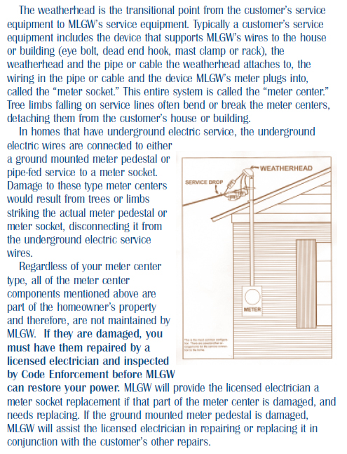 Customers are also reminded that damage to meter centers affixed to their premises must be repaired by qualified electricians prior to power being restored.